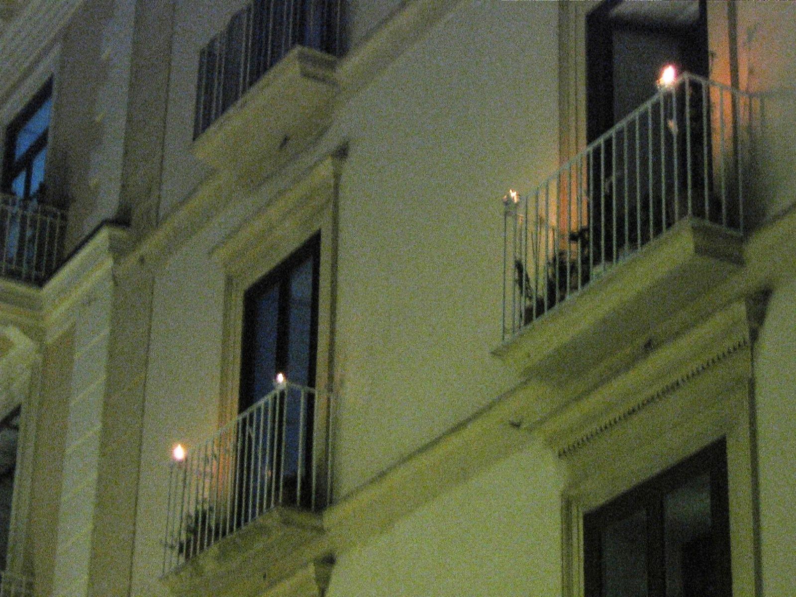 tutte le luci si spengono e le strade restano illuminate suggestivamente solo dai lumini esposti sui balconi: